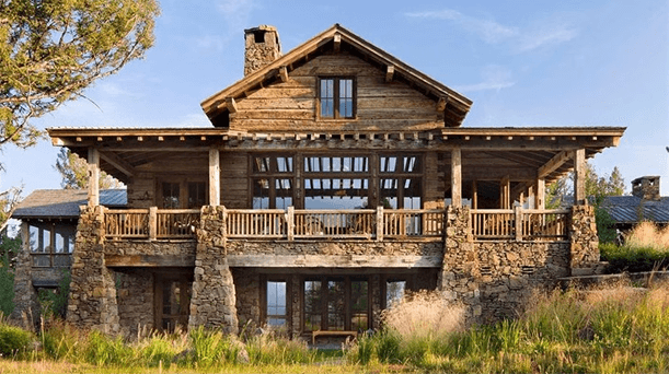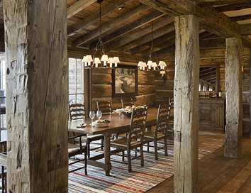 Reclaimed hewn timbers as structural elements throughout. Reclaimed floorboards with hand-forged custom nails. Montana Moss Rock stonework on exterior and interior. Custom ironwork. Eight bedroom suites, lookout tower, wine cellar, full-service kitchen.